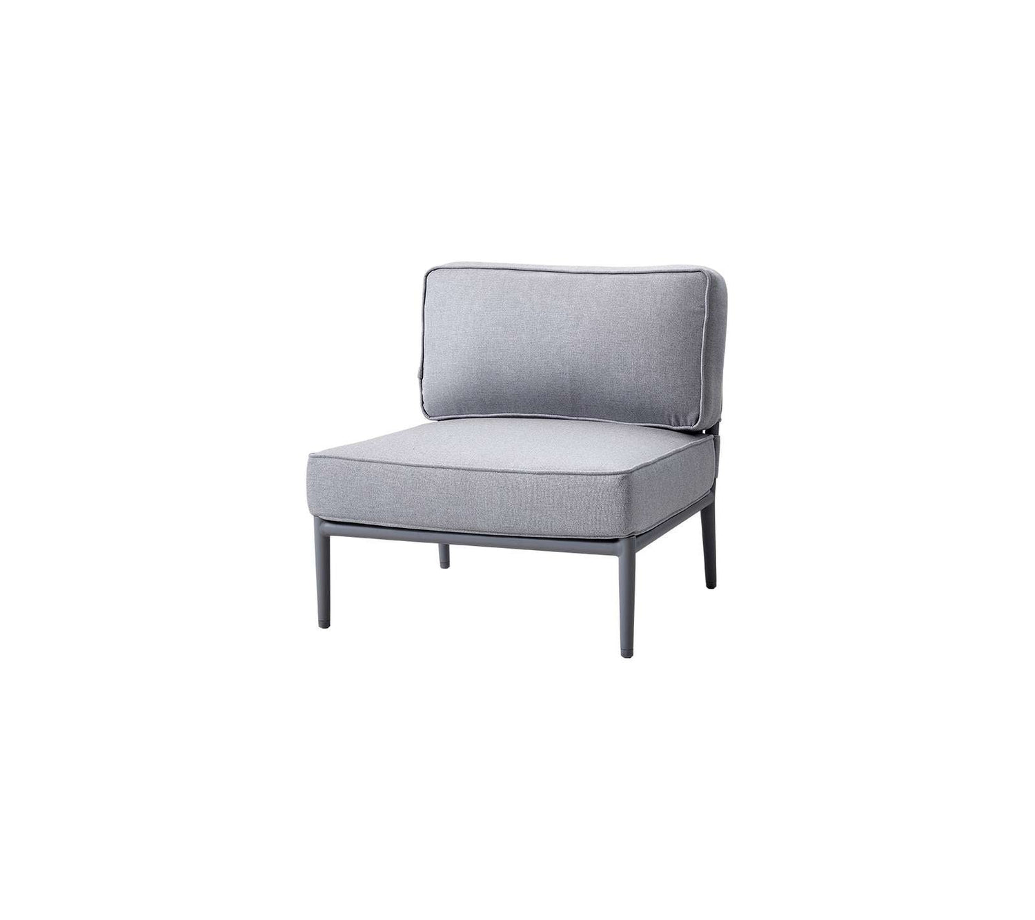As with the other modules the single module comes with all-weather cushions that are designed for true outdoor living. For optimal draining of rain water, simply put the cushion in a vertical position, and the water will drain. The water will also drain when placed normally, yet the drainage and drying will be slower this way. The conic series is developed with great dedication to creating optimal comfort and details. The cushions are the result of many hours of work and a huge number of prototypes each tested by the designers and the Cane-line design Team. If the Conic modules are used in very humid and cold climates of the northern hemisphere, it is recommended to buy our furniture covers or store the cushions indoor in order to ease the cleaning of them for the new season. The cushions can e.g. be cleaned with a water jet (soft jet) and put in vertical position to dry.