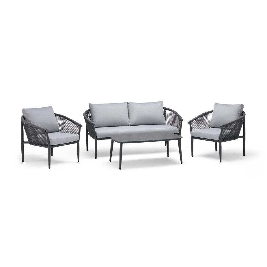 The Kyoto Lounge Set comprises a sofa, 2 chairs and a coffee table. Perfect for relaxed patio living.