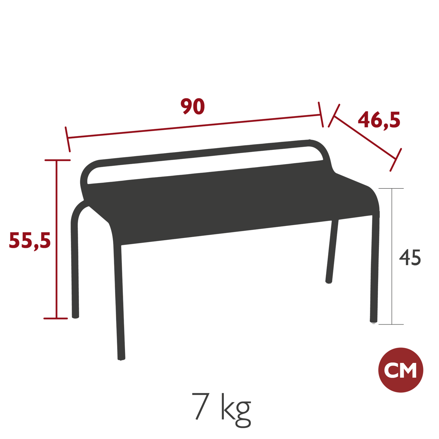 Dimensions: length 90cm, depth 46.5cm, height 55.5cm, seat height 45cm.