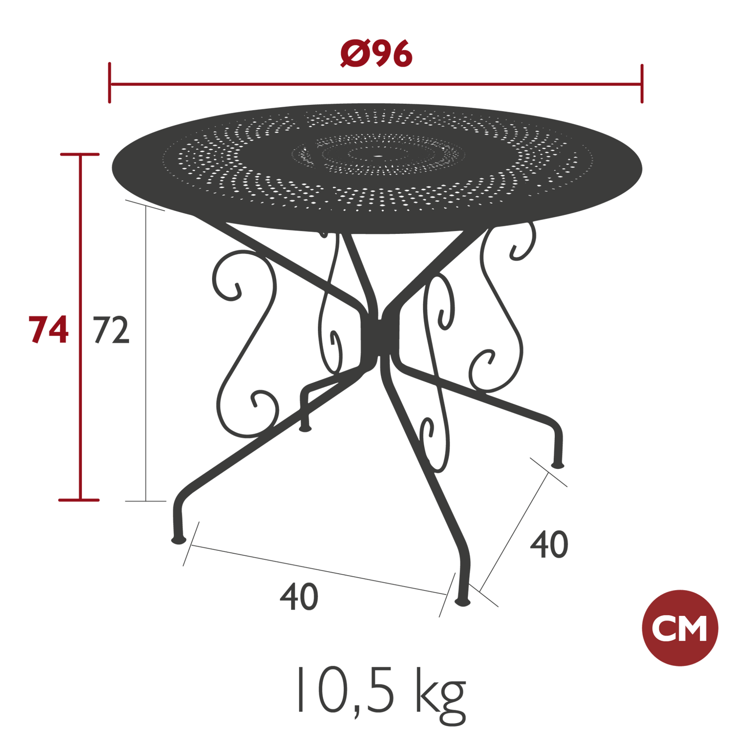 Crafted with a powder-coated perforated steel sheet table top and tubular/wire steel base, the Montmartre Round Table is both sturdy and stylish. Featuring a parasol hole for convenience and available in 15 vibrant colours, this table is a versatile addition to any outdoor space.