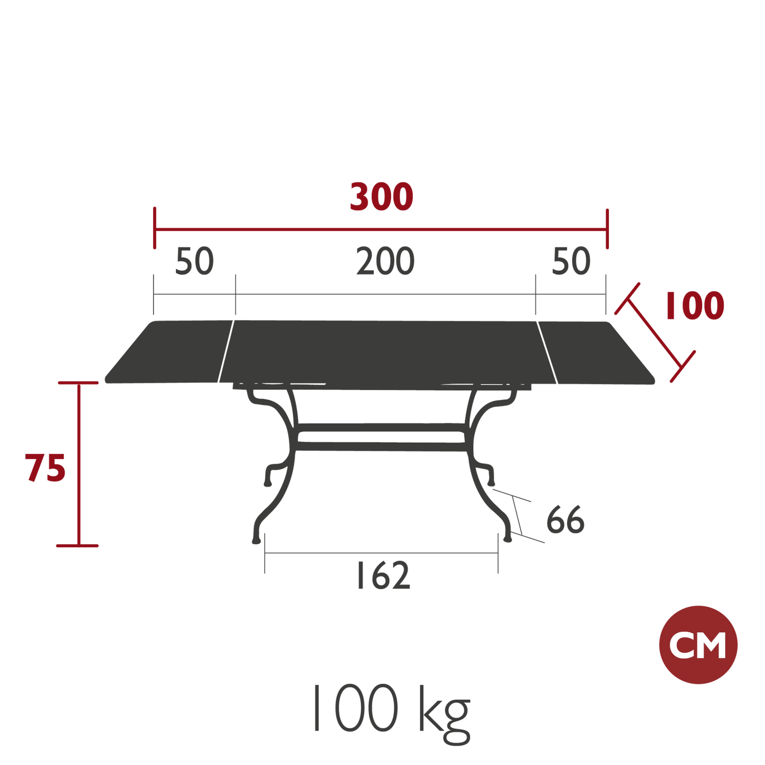 Dimensions: length 200-300cm, width 100cm, height 75cm.
