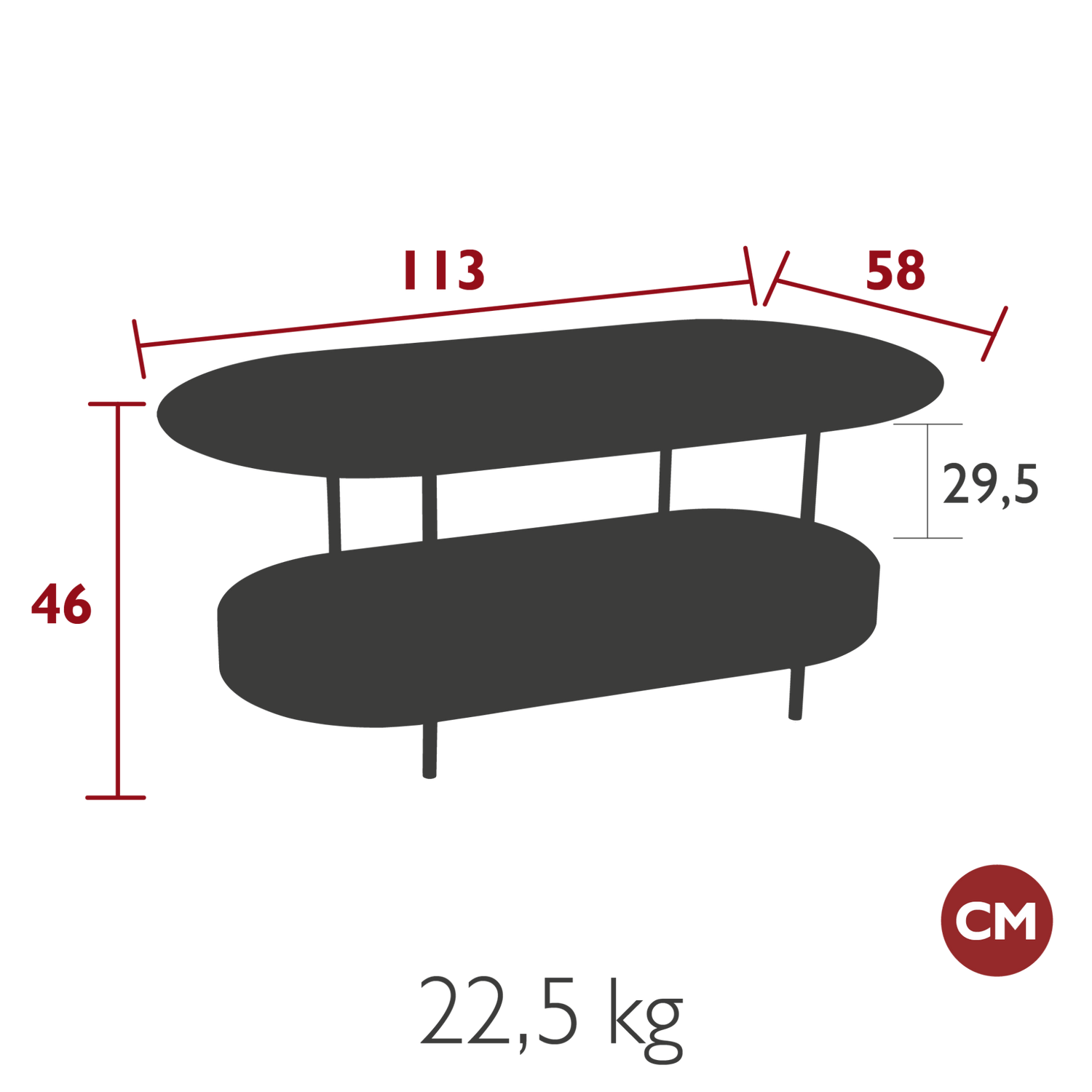 Dimensions: length 113cm, width 58cm, height 46cm.
