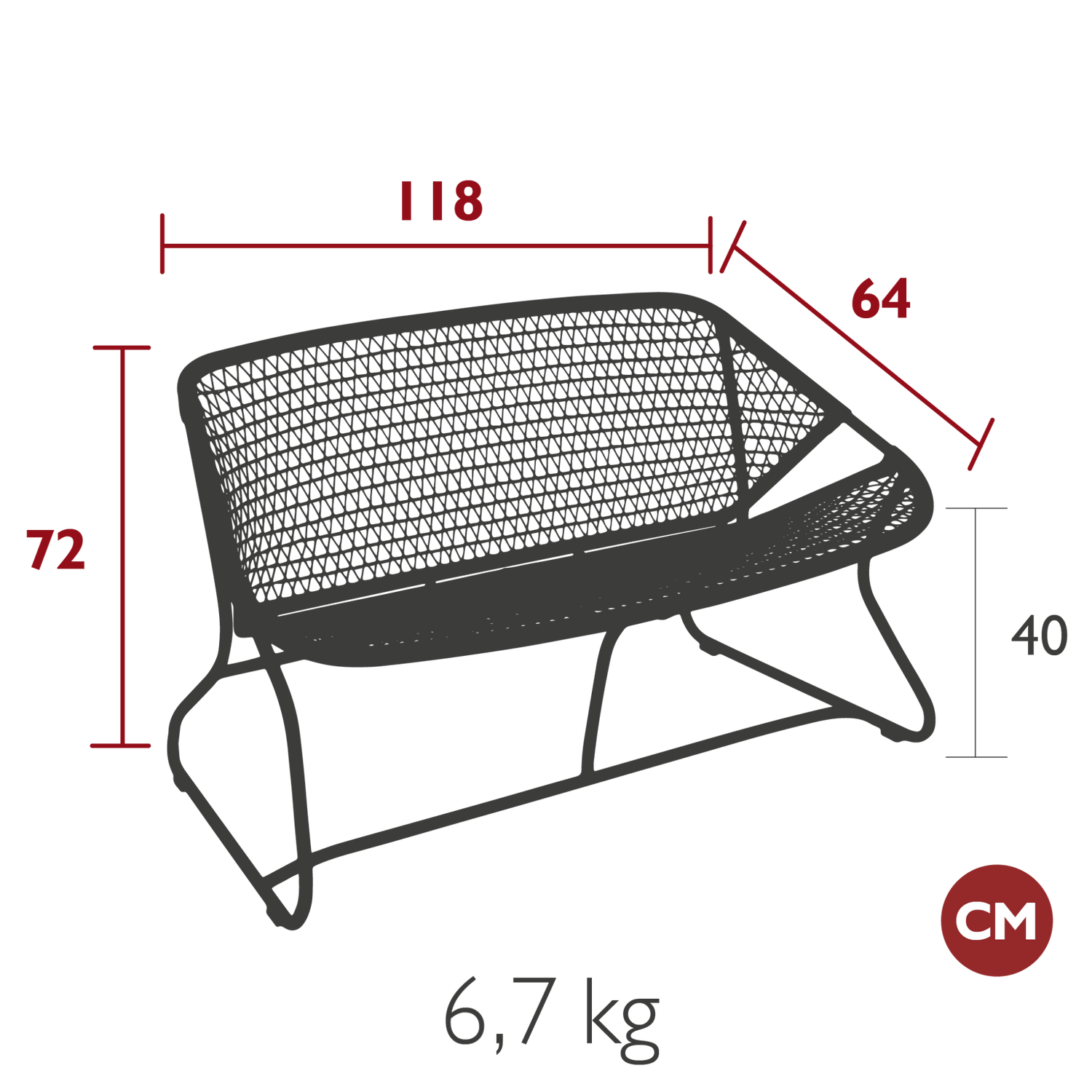 Dimensions: depth 64cm, width 118cm, height 72cm, seat height 40cm.