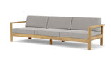 The Linear 3-Seater Sofa features a durable teak frame and angled back cushions, providing superior comfort and support. An optional matching ottoman enhances ergonomic stability and improves posture. Enjoy a luxurious lounging experience with this timeless and sturdy design.