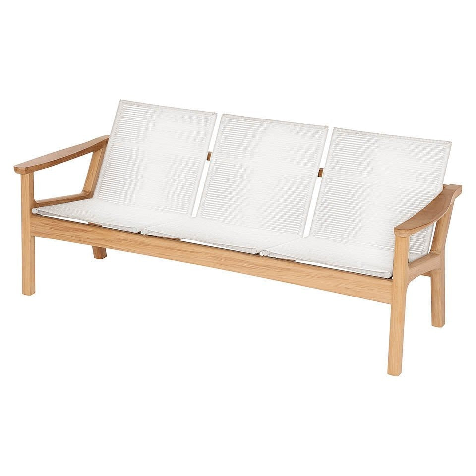 The Monterey Three-seater Settee is constructed from teak with woven olefin and Textilene seats and backrests. The braiding is rugged but soft to the touch and allows this seat to be left outside in all weather conditions.