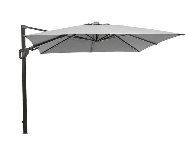 The Hyde hanging parasol is made of aluminium and comes in different fabric colour choices. The Hyde parasol can rotate. Which makes it easy for you to catch the sun. The Hyde parasol is sold including 4 x 25 kg stone tiles to hold it in place. We advice that the parasol is not used during heavy wind. Fabric is made of 100% Olefin 200gr/m2.