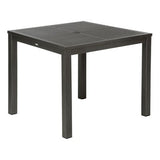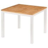 The Aura Dining Table is constructed from powder coated aluminium with a teak or powder coated aluminium top. The table has a parasol hole and a teak plug for when it is not in use.