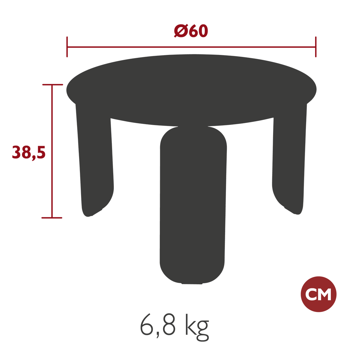 60cm dimensions: diameter 60cm, height 38.5cm.