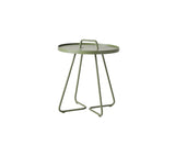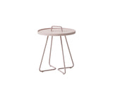 On-the-move side table is a trendy, lightweight and stylish side table – it is both elegant and practical and with its easy-to-grab handle and removable tray, it can convert from a designer side table to a handy serving tray in no time. Made from aluminium, it is the ideal accompaniment for outdoor and indoor use. Dimensions: diameter 52cm, height 60cm.