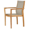 The Horizon Dining Armchair is constructed from teak with a textilene sling. Teak is very stable and rot resistant, making this a low maintenance garden chair.