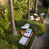 Thermo-lacquered aluminium frame.Deck available in teak or white Corian®.Mesh backrest and seat in Batyline®.